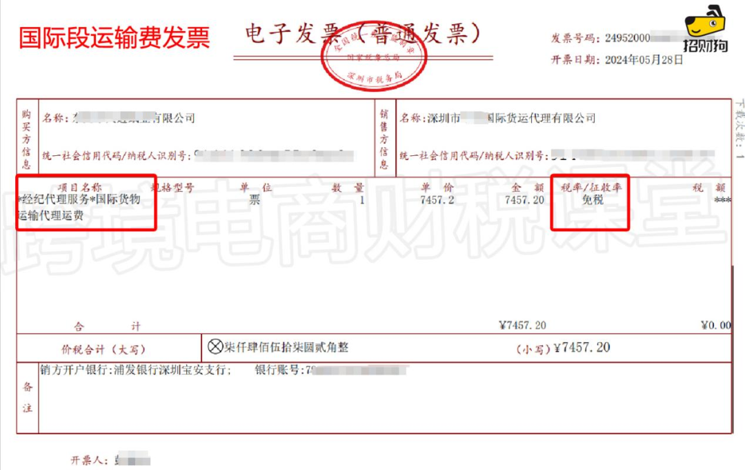 大部分跨國電商賣家通常是直接把貨丟給貨代公司,由貨代公司一條龍全部搞定。為了少繳稅,部分貨代公司會把境內費用、國際運輸費用一起開給出口企業,開的是0稅率或免稅發票。但根據增值稅的規定,只有國際運輸及代理費才享有免稅,國內段的是不享有免稅的,因此,賣家要申請出口退稅,一定提前和貨代公司溝通,國內段發票和國際段運輸發票一定要區分開來。其次,現在稅局會要求所開發票,必須詳細顯示各費用名稱,如代理運費、代理報關服務費、代理雜費等;但實際貨代基本上都是一起把代理費開成國際貨物運輸代理服務費,這個企業在拿到發票的時候也要注意檢查。